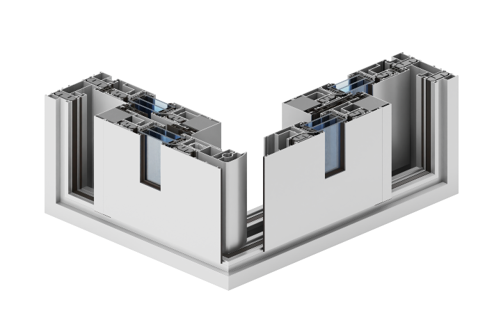 Az UG rendszer 90˚ sarokmegoldással kifejezetten nagy sarokablakfelületek kialakítására fejlesztették ki. Ideális magán- és középületek azon részeire, ahol nyitott terek szükségesek. Az ajtó kinyitását követően a szerkezet két részét elválasztó oszlop is elmozdul, így szabad mozgást biztosít a helyiség sarkában. Maximális szárnysúly: 400 kg.